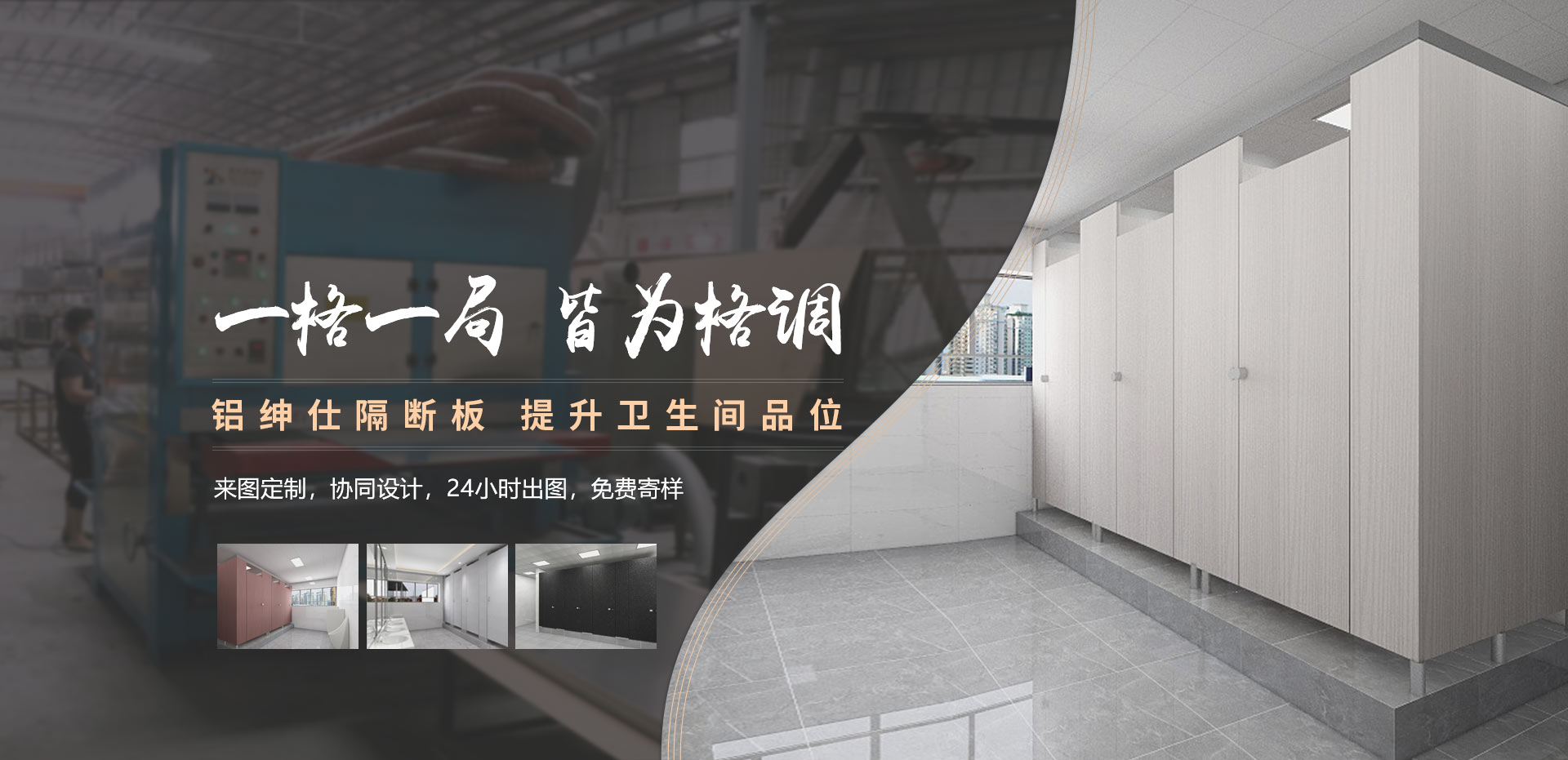 擁有10年以上設計經驗的專職設計團隊與安裝團隊,掌握凹凸造型設計技術,擁有多項產品專利,累計提供1230款衛生間隔斷款式;